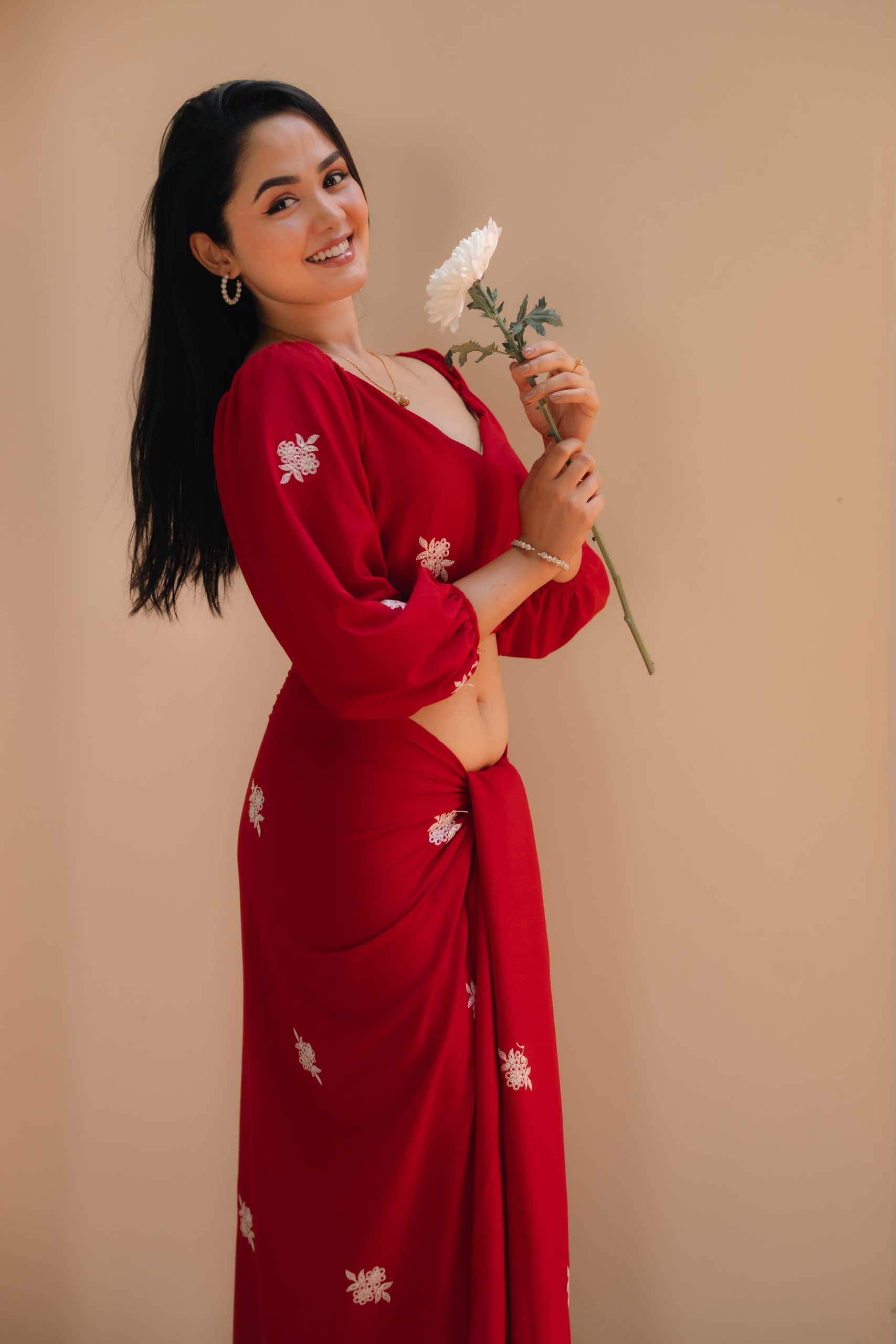 Scarlet Drape Embroidered Lungi Kit
